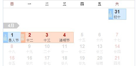 4月2日至4日放假3天,3月31日、4月1日(周六、日)上班。